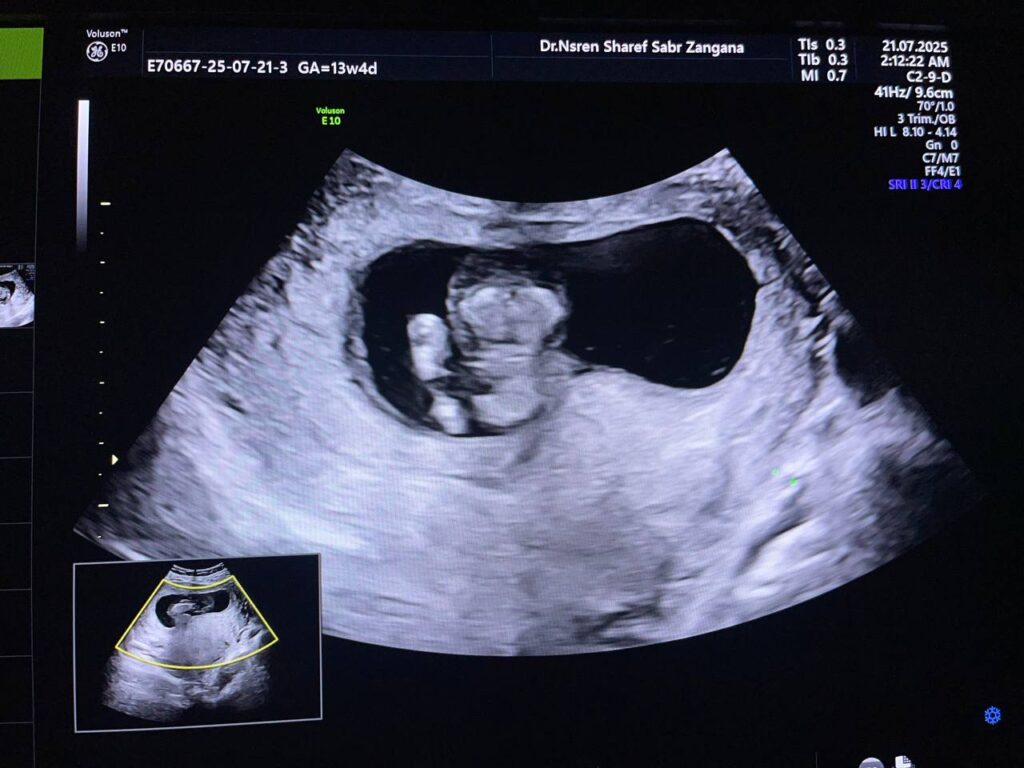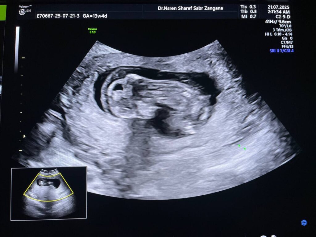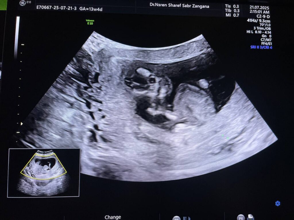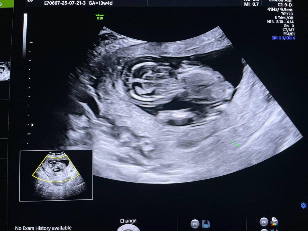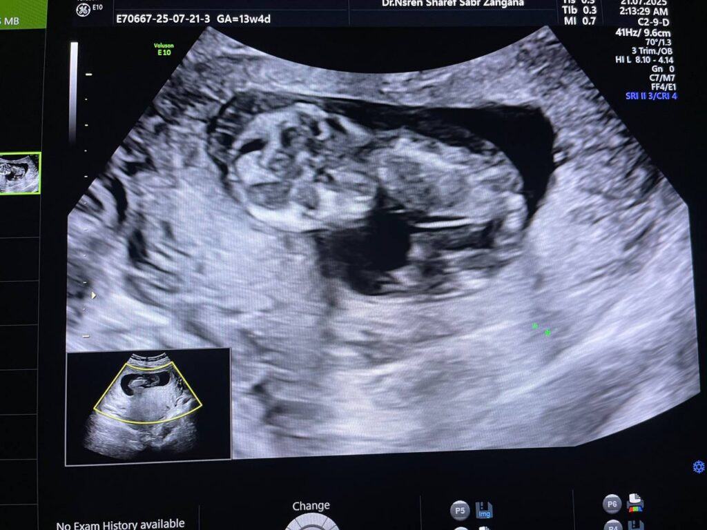 Increase nuchal translucency 5.8mm , diffuse skin edema, with presence of extruded mass, its size 14x50mm from anterior abdominal wall, mostly omphalocele (with extrusion liver within) , picture mostly of chromosomal anomaly , please for further study.