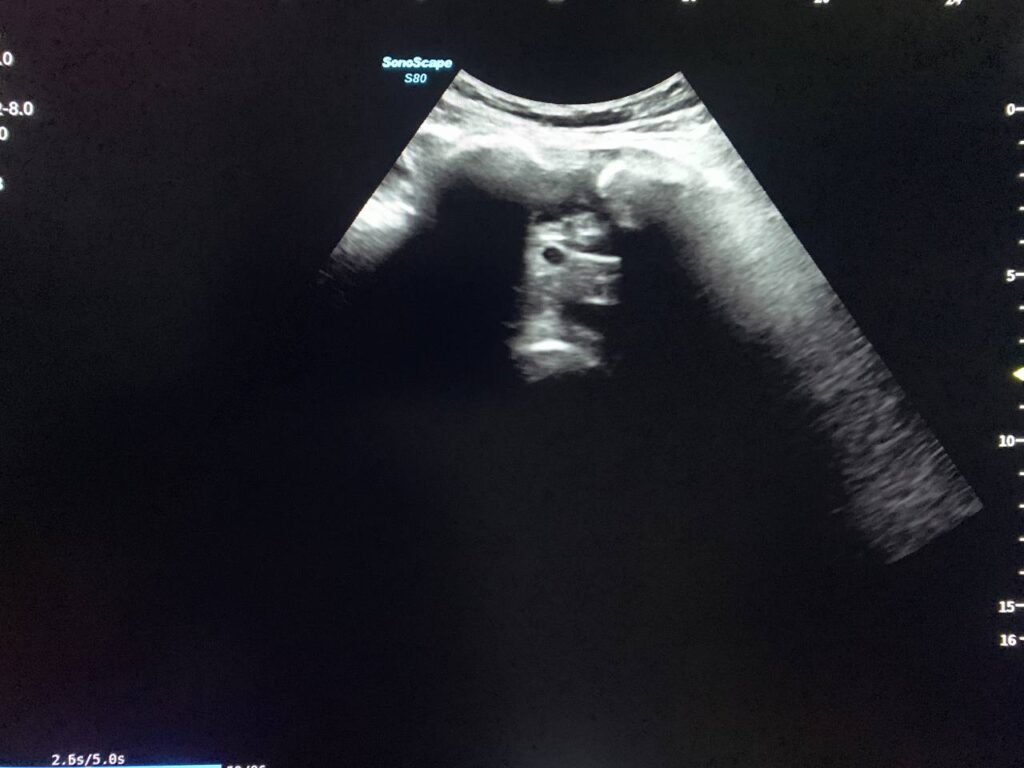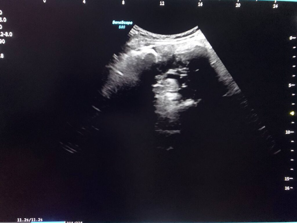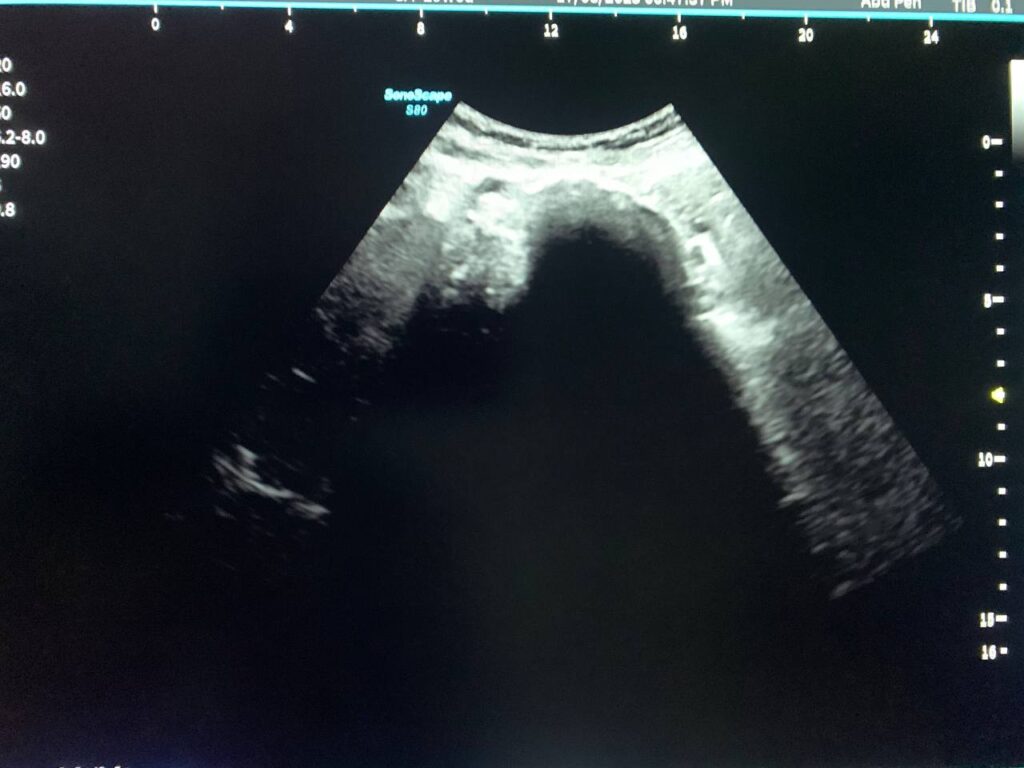· Small amount of free pelvic fluid , history of recent surgery