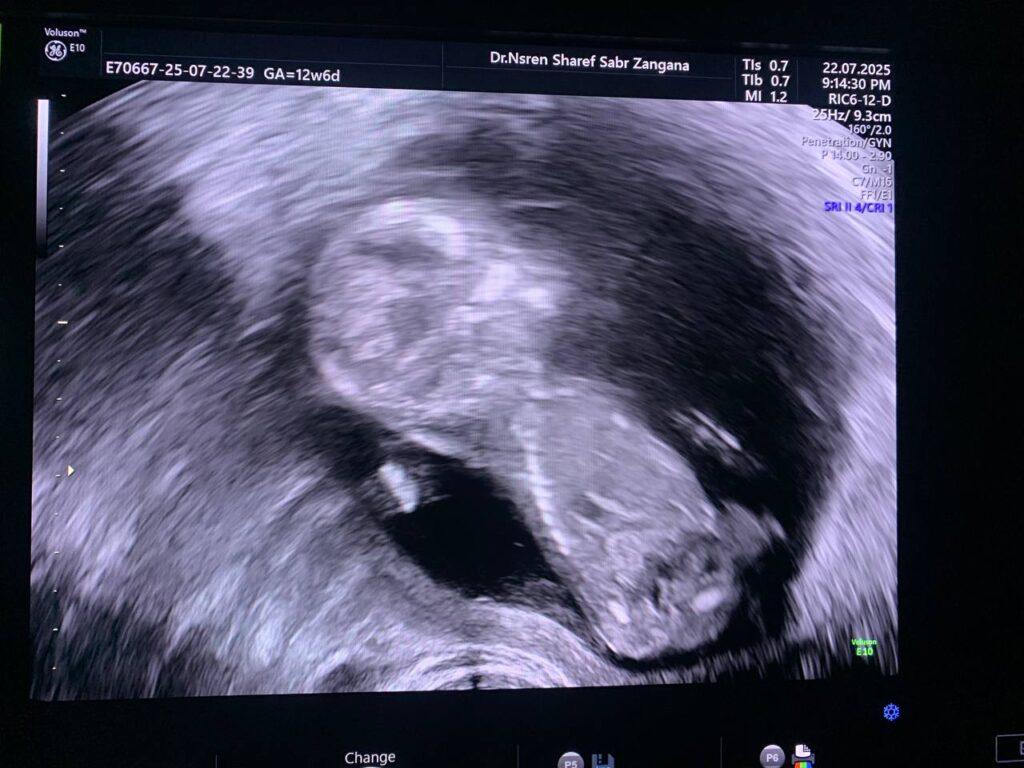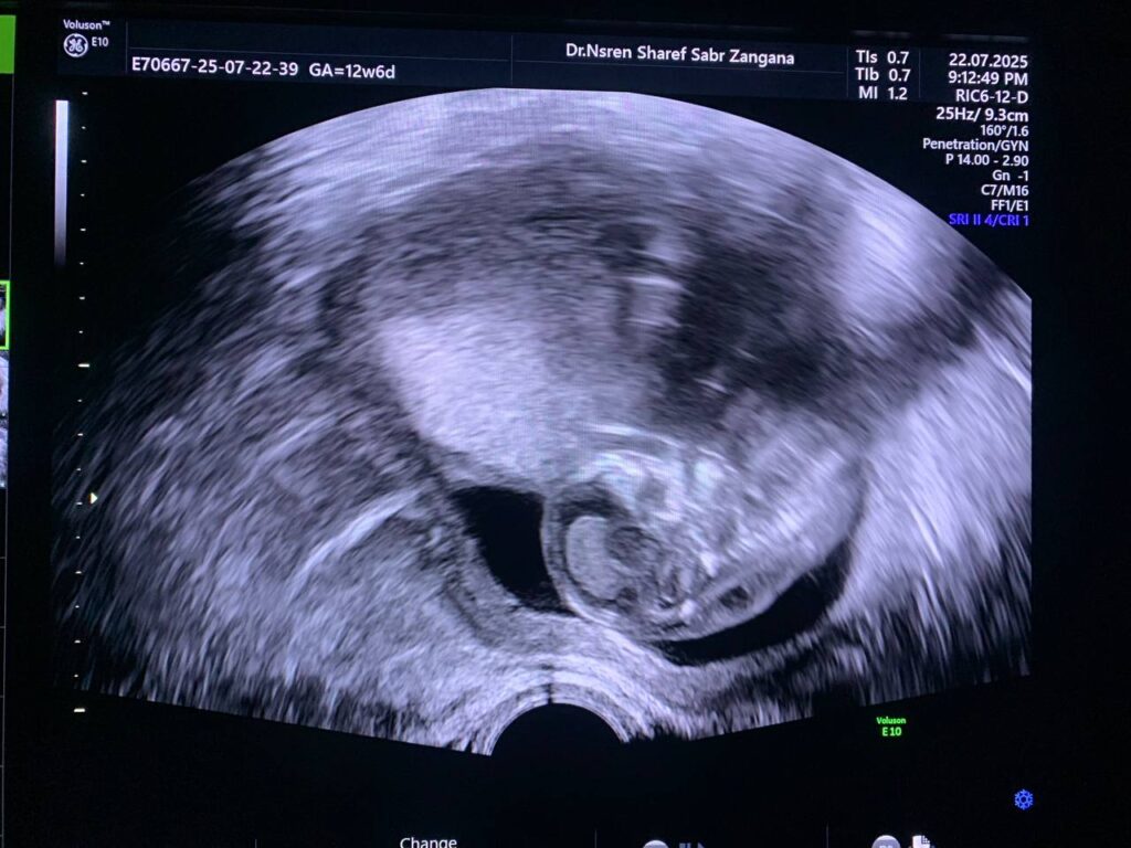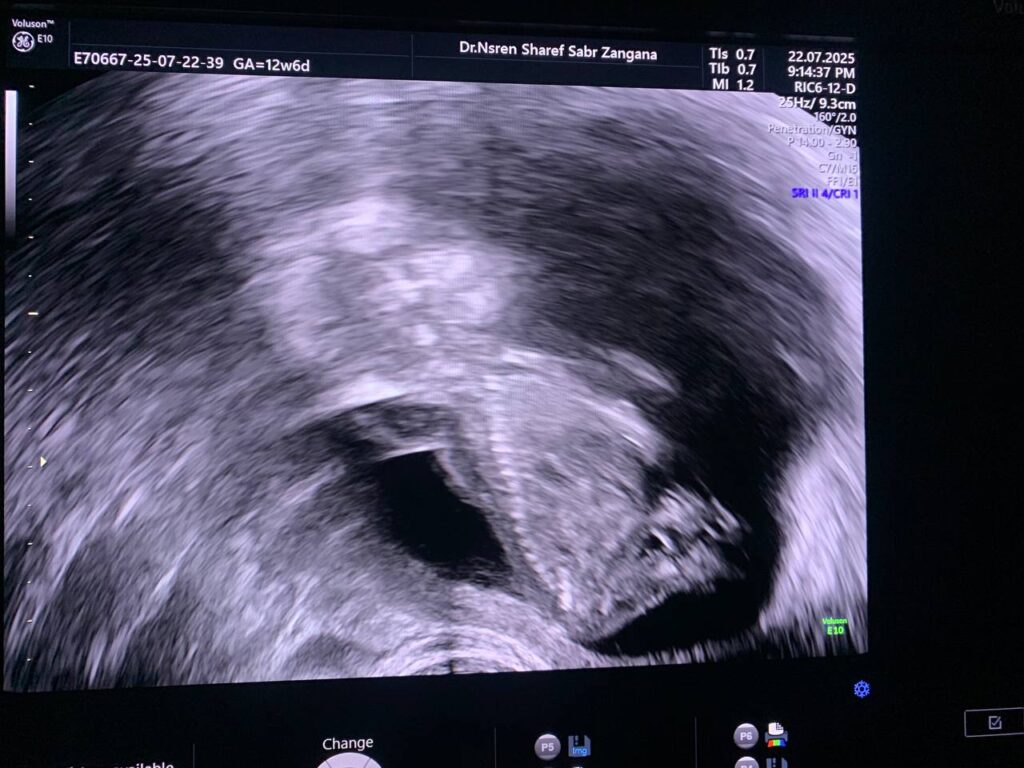 Associated with omphalocele 8.5×9.6mm (could be early physiological ?) .