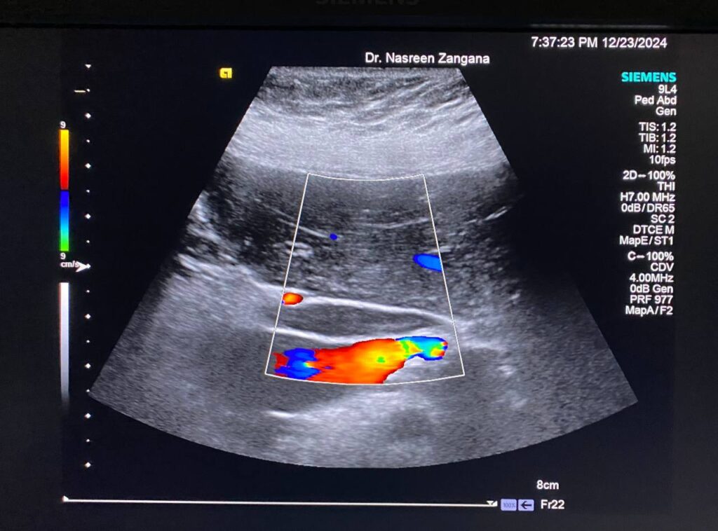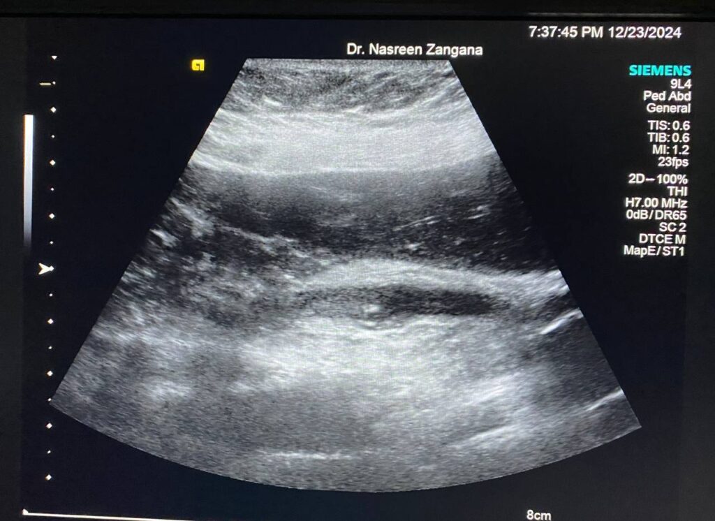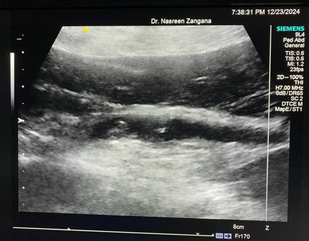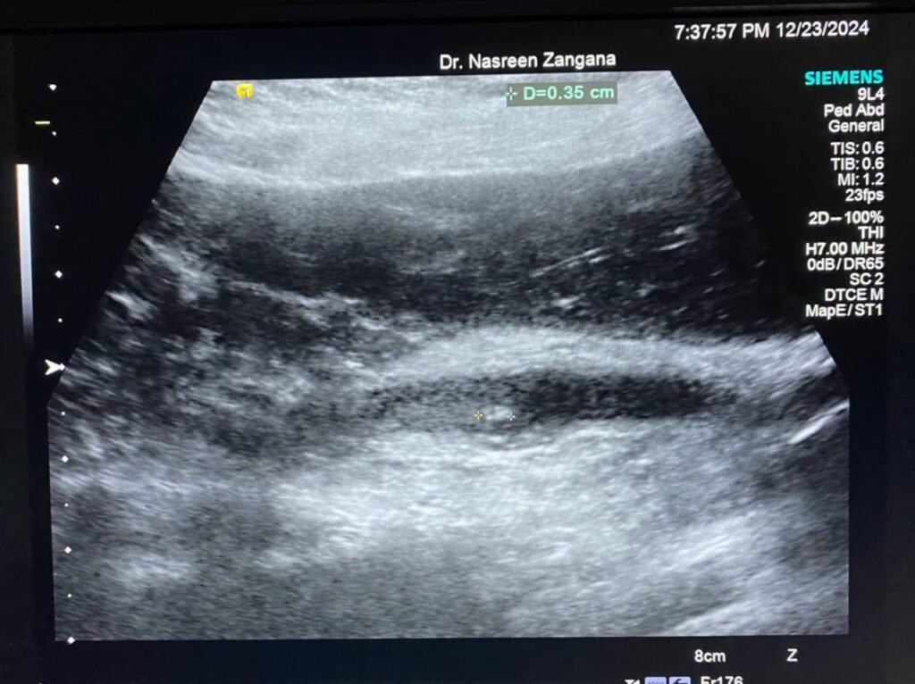 Diffuse dilated common bile duct 7.3mm , with presence of multiple echogenic foci within , the largest 3mm