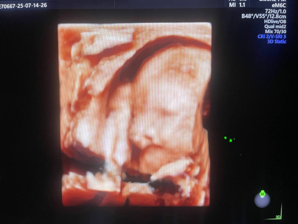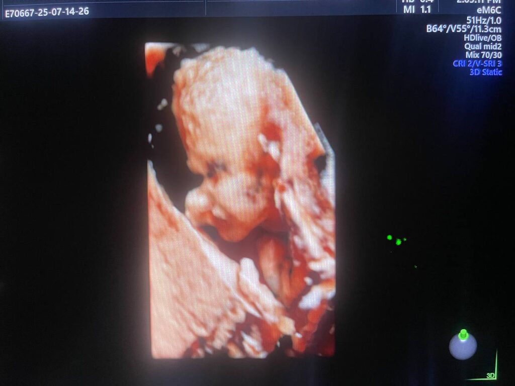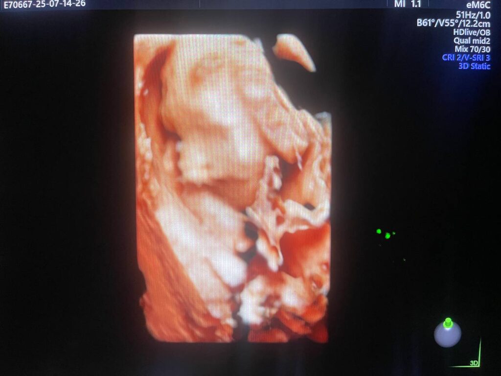 Multiple Craniofacial anomaly seen , mild dilated posterior atrium of the lateral ventricle 10.3mm , agenesis of the corpus callosum ??can not be excldued , bilateral cleft lip & palate , small orbits & hand anomaly , congenital heart disease can not be excldued , please for further study & echocardiography , Patau Syndrome? (Trisomy 13 ? ) can not be excldued ? please further study , no other anomaly can be detected now