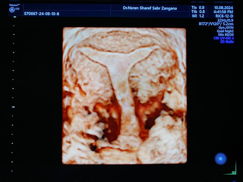 Arcuate fundal surface with fundal depression about 1.5mm, both lateral wall are medially displaced ,narrow cavity, T shape cavity ?? Surface rendering & Omni view