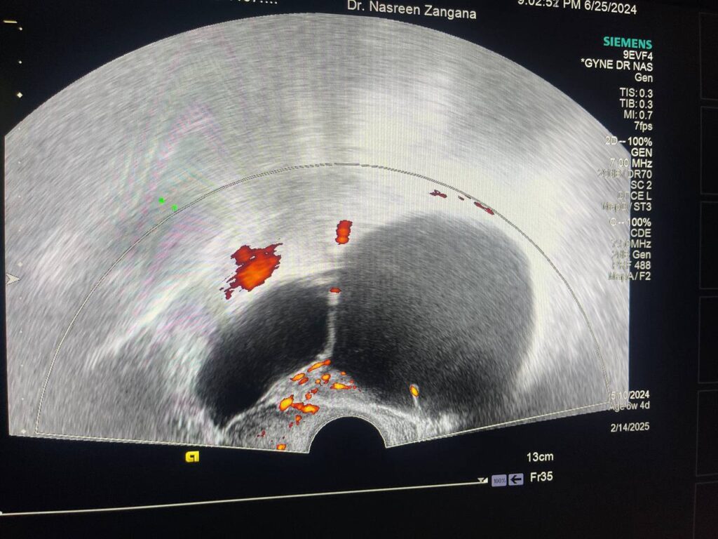 Left adnexal multilocular (< 10) cystic mass > 119x70mm, no extension to surrounding tissue, no ascites, no lymph node, mostly benign, for further study, low grade tumor cannot be excluded