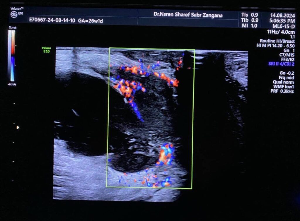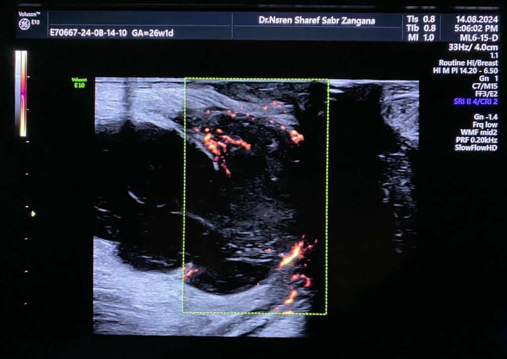 Peri-anal vascular suspicious solid mass with necrotic changes
