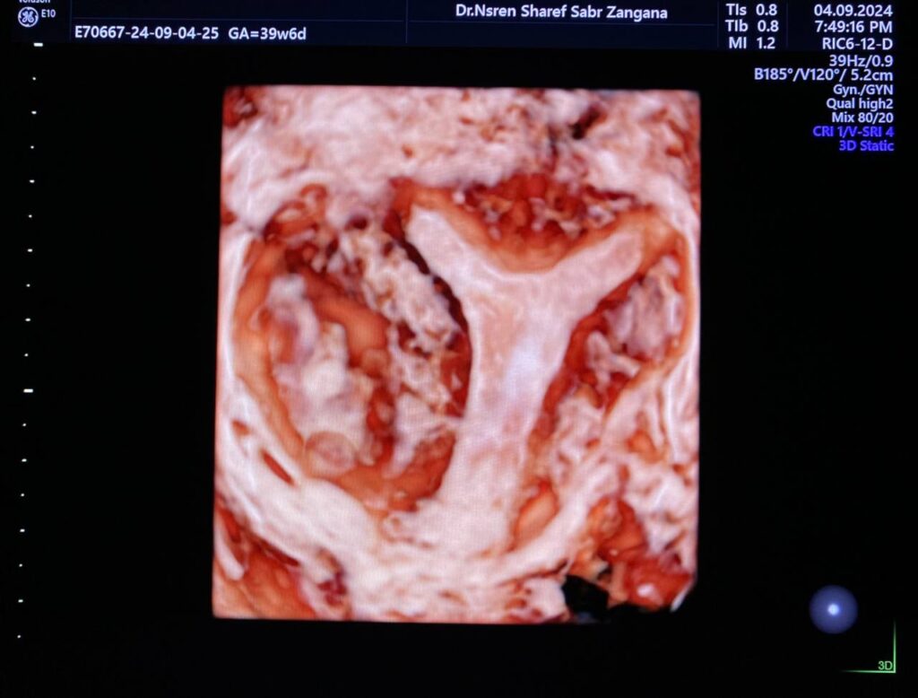 Trans-Vaginal 3D 04/09/2024 · Nasrin Zangana Arcuate fundal surface, both lateral walls are slightly displaced, narrow cavity??